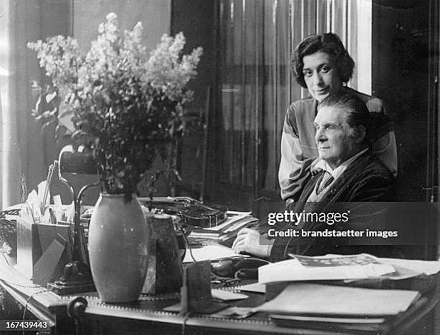 尤金·伊萨依和他妻子。 比利时小提琴家,指挥家和作曲家。 克拉里工作室的照片。