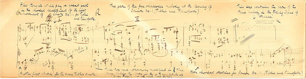 Autograph sketches for three works, including the violin sonata no.1.